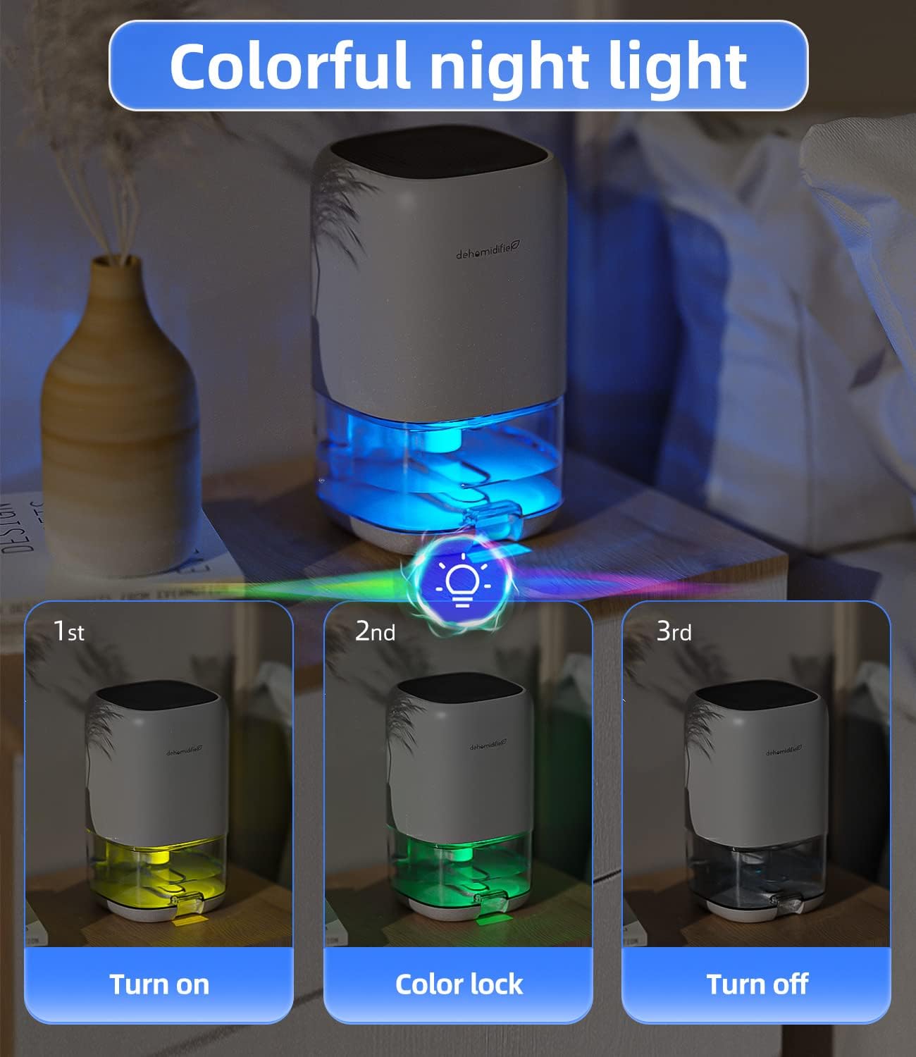 One standout feature is the colorful night light dehumidifier function with seven romantic atmosphere lighting options. Controlled by a separate button, this ambient lighting adds aesthetic value while the unit silently removes moisture. According to Energy Star guidelines, energy efficient small dehumidifier models like this consume significantly less power than traditional compressor units.