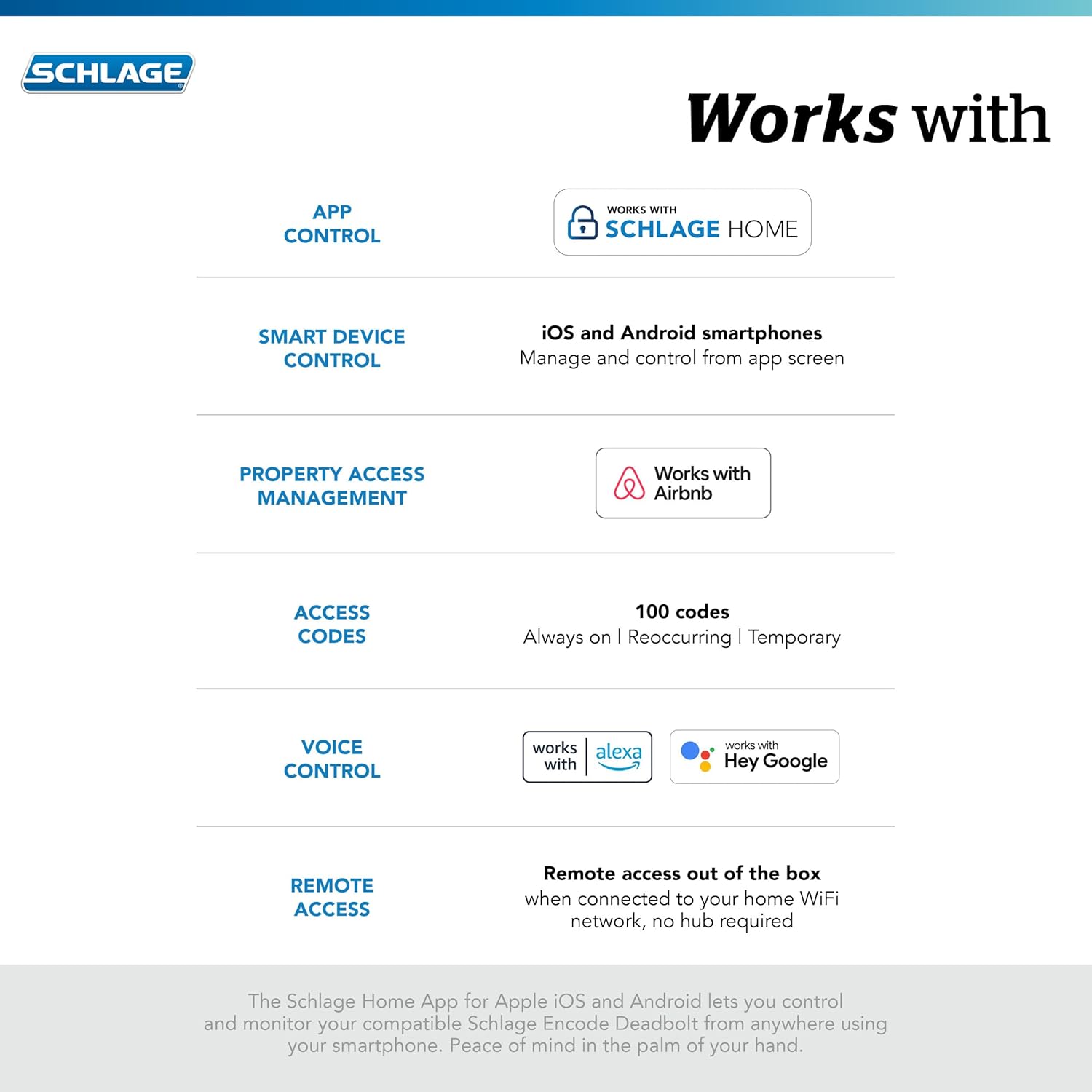 Alexa and Google Home Integration: Voice control functionality turns this into a truly hands-free Alexa compatible lock and Google Home smart lock. Simply ask your voice assistant to lock the door as you leave or check its status from across the house. The integration requires the Schlage Home app paired with your smart speaker for seamless operation.